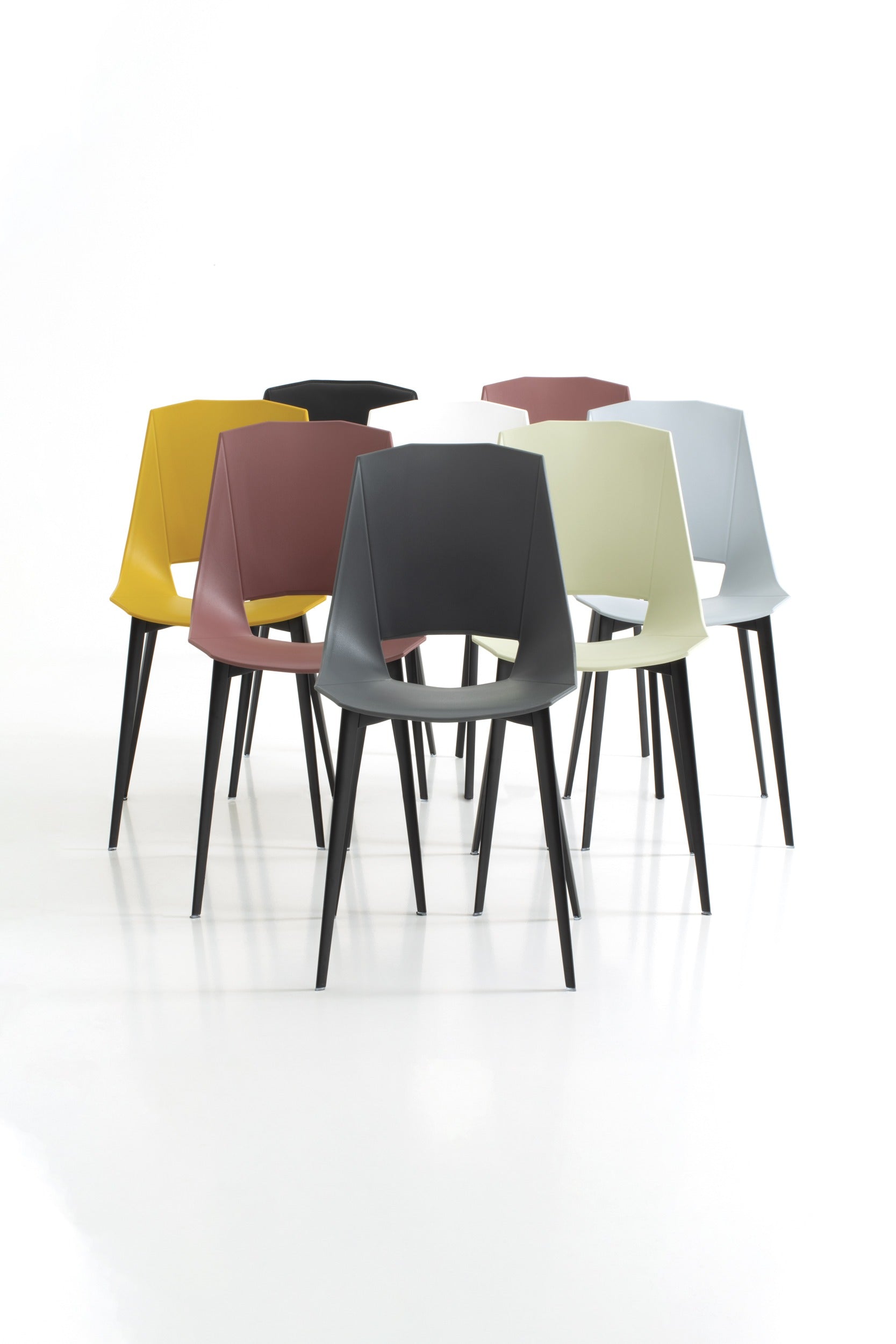 Sedia iconica di Pointhouse, disponibile in una vasta gamma di materiali, colori e finiture di scocca e fusto Eva Family si inserisce perfettamente negli ambienti più diversi: dall’ufficio agli spazi pubblici, a quelli della casa. La scocca è realizzata in polipropilene rinforzato con fibra di vetro, con rivestimento in cuoio, pelle o tessuto. Il fusto è disponibile in 5 modelli differenti tra loro: - Eva 1, fusto in pressofusione di alluminio.