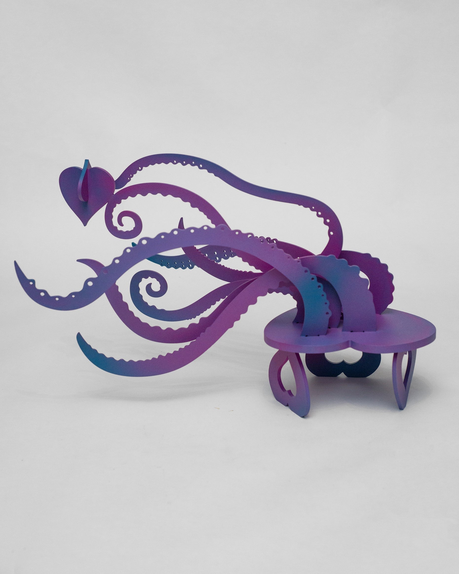 Un’opera di design che cattura l’immaginazione con i suoi eleganti tentacoli, i tre cuori pulsanti e i nove cervelli che stimolano la curiosità. Questa straordinaria creazione è un inno alla cultura e alla meraviglia del mondo naturale.