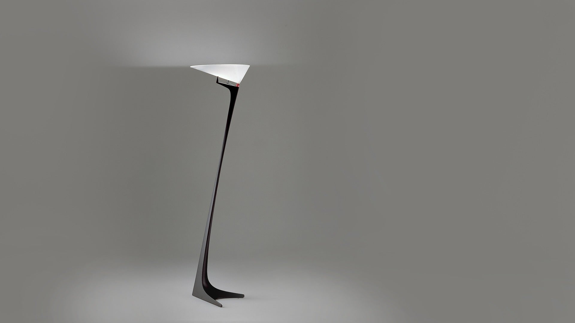 La silhouette di Montjuic è caratterizzata dalla simmetria delle forme triangolari della base e del diffusore, in equilibrio su una sfera rossa.