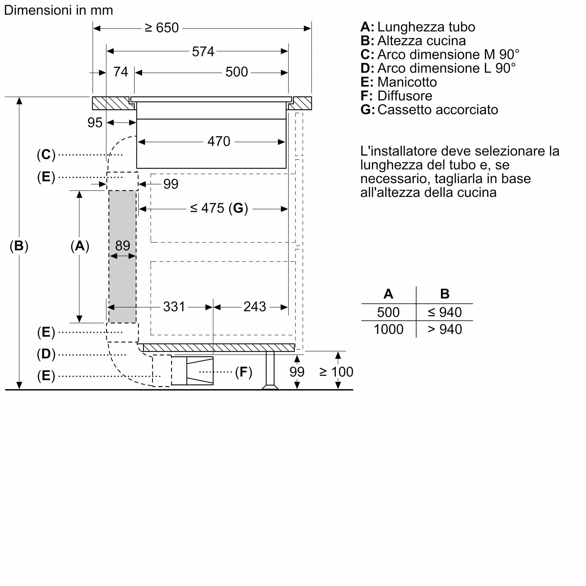 Altezza minima della nicchia - 500 mm