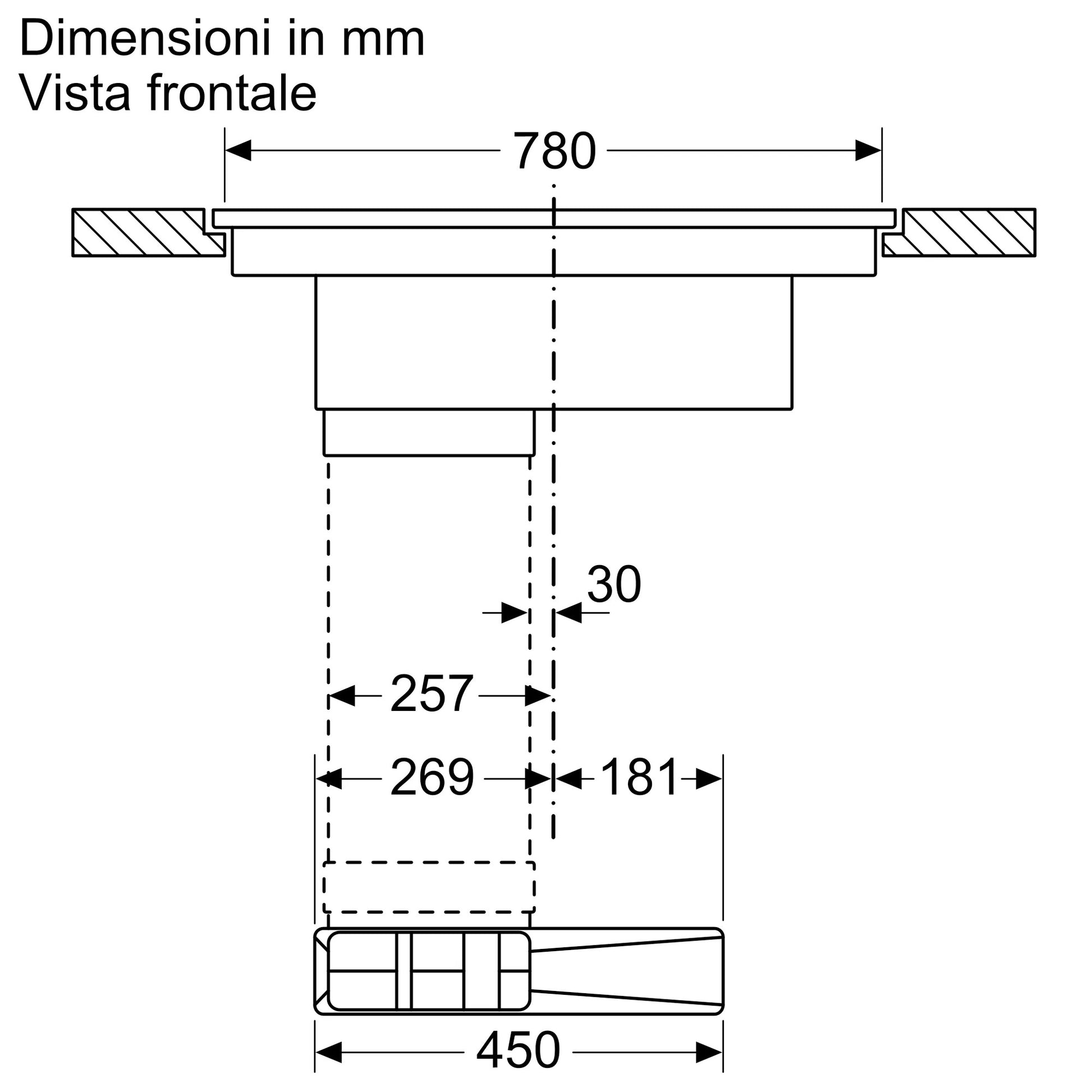 Piano a induzione con cappa integrata 80 cm flush mount V68PYX4C0
