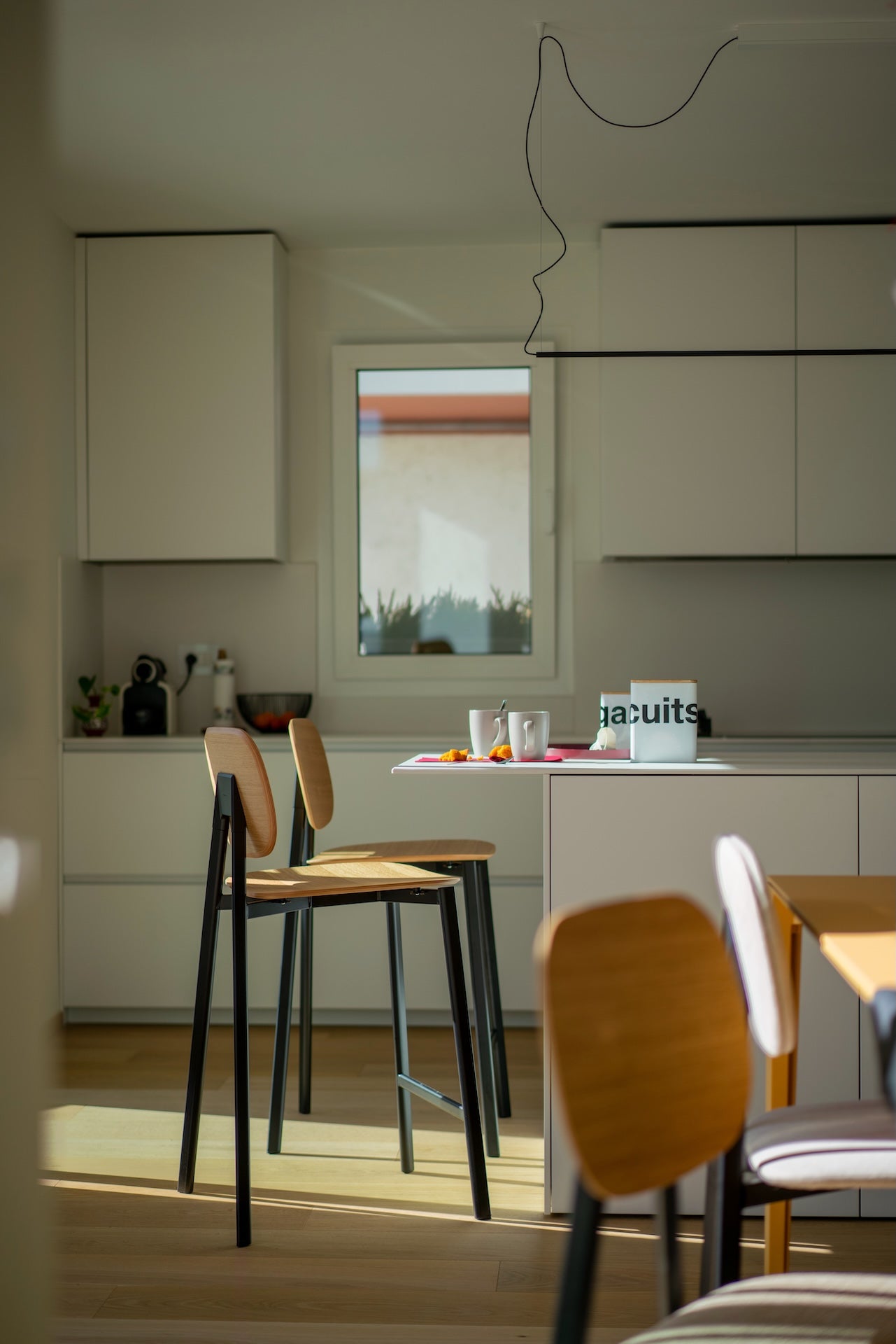 Sedia dallo stile dinamico e originale, che arreda con ironia e leggerezza sia gli spazi della casa che spazi pubblici come bar, pub e ristoranti.