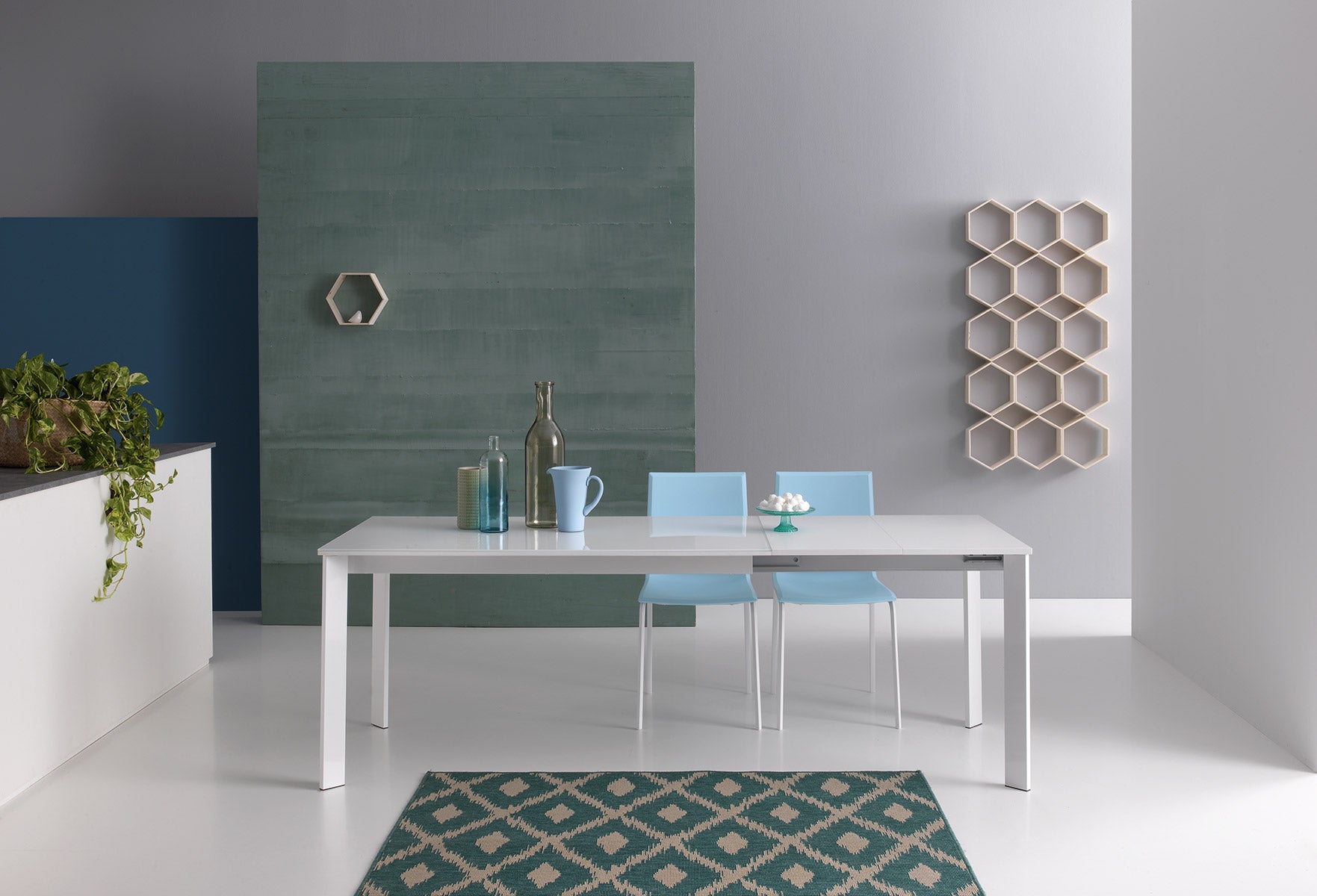 Tavolo allungabile con struttura telescopica in metallo verniciato a polveri epossidiche. Tavolo adatto all’ambiente cucina e living, con struttura telescopica in metallo verniciato a polveri epossidiche. Piano e allunghe disponibili in pannello nobilitato melamminico. Adatto anche ad ambienti con spazi ridotti con un sistema di allunga che permette di raddoppiare i posti a sedere. Possibilità di ordinare anche la sola struttura.