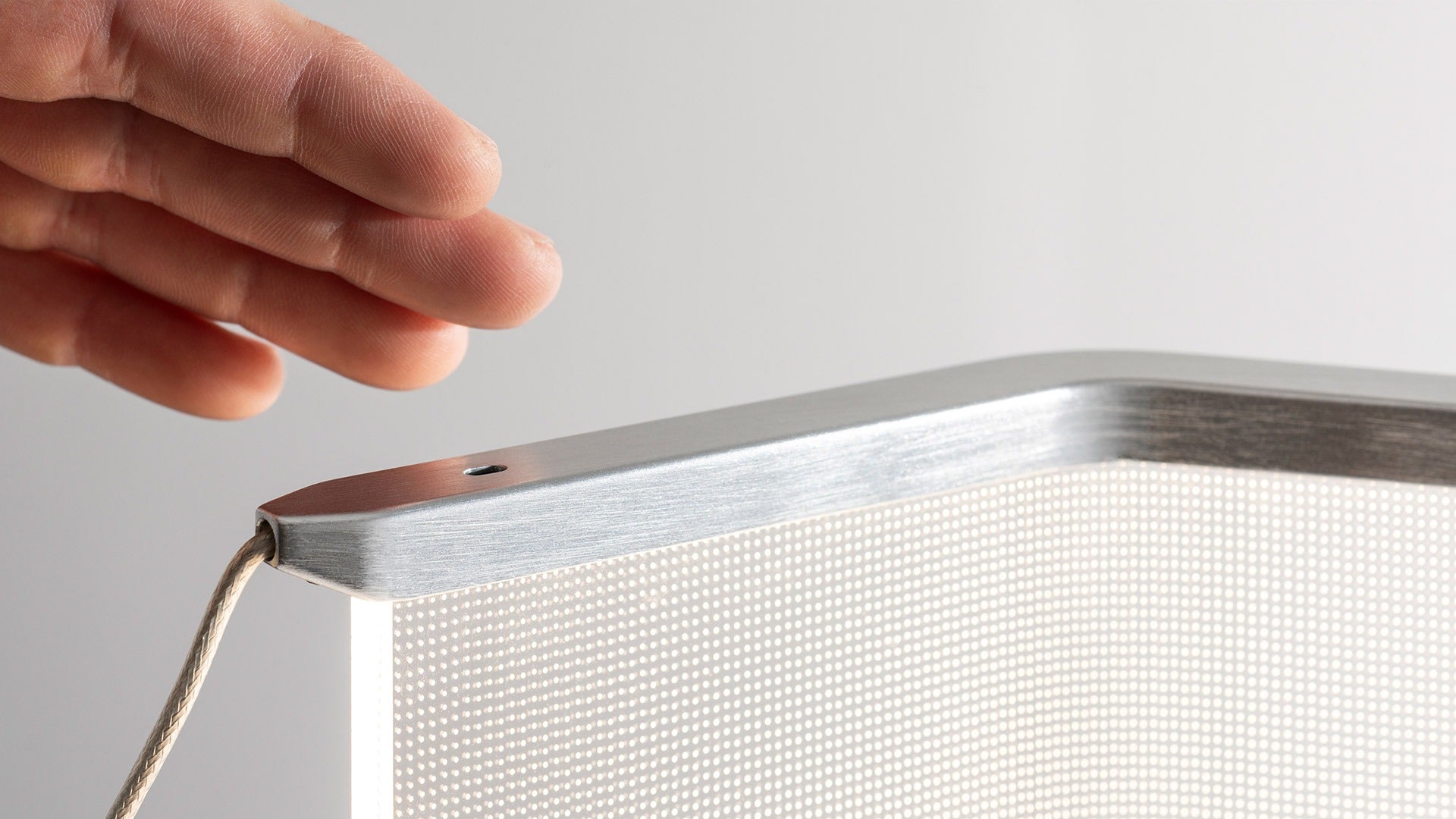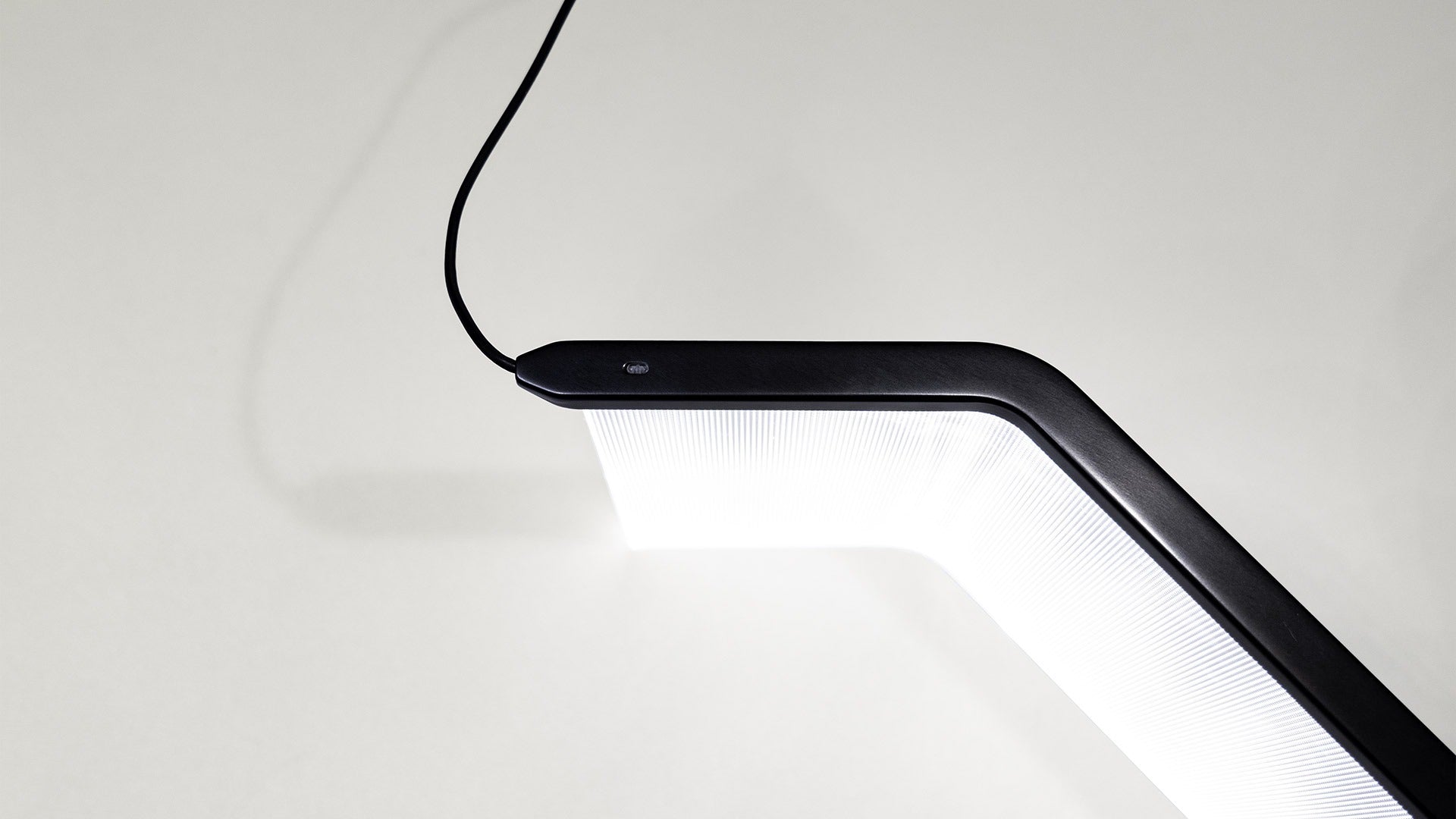 Totalmente assente e smaterializzata quando è spenta, acquista volume quando è accesa grazie alla luce che, iniettata al suo interno, si diffonde grazie alla trama di microincisioni studiate per ottenere una perfetta uniformità.